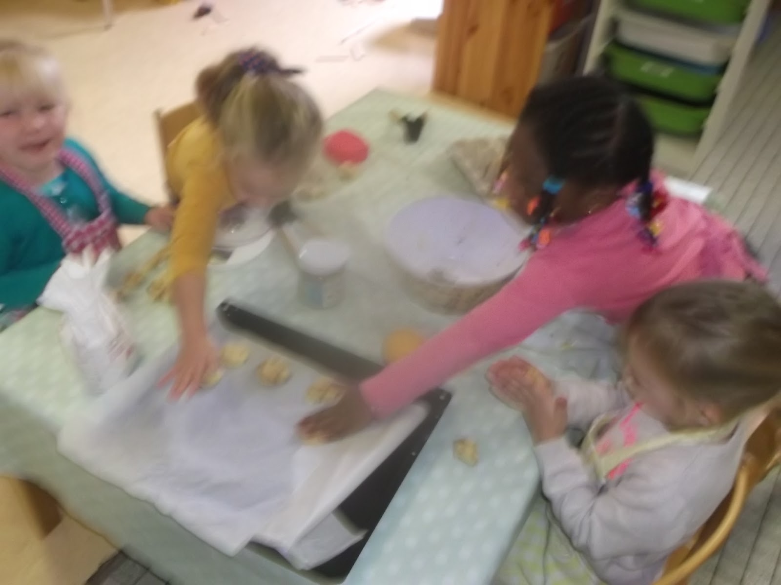 Amelia doet suiker in de kom voor de koekjes