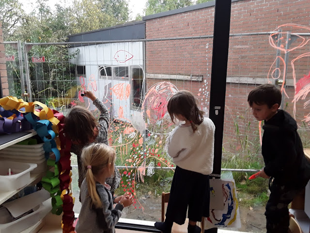We tekenen met stiften van Ellie planeten op ons raam.